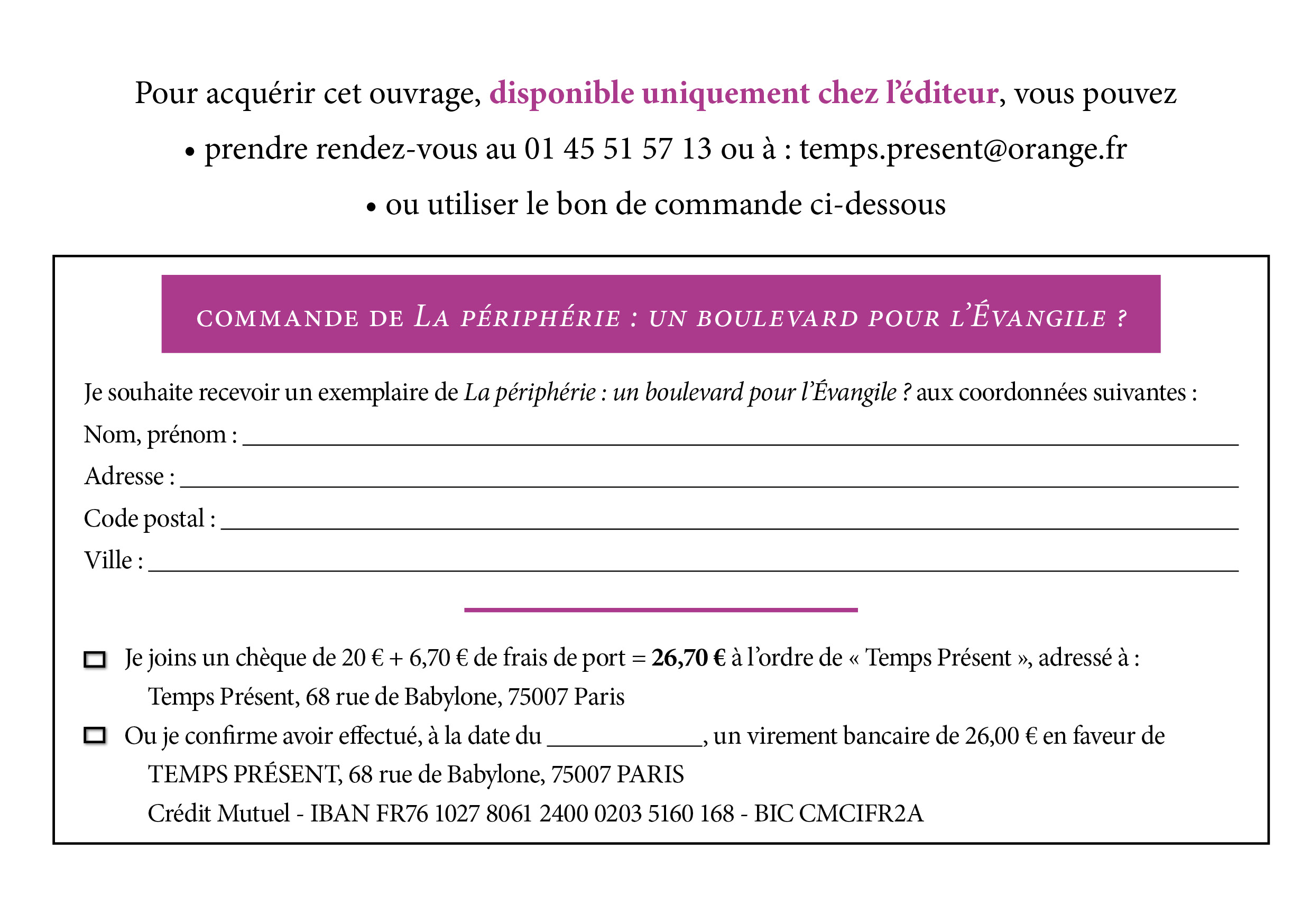 La périphérie : un boulevard pour l’Évangile ? – bon de commande