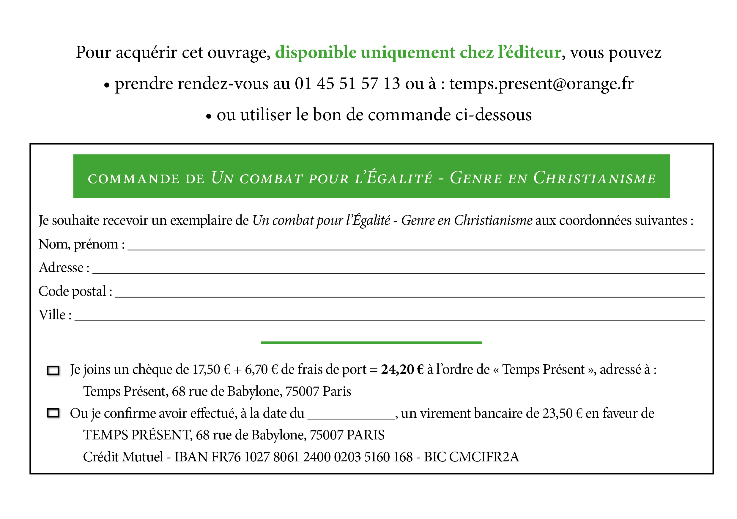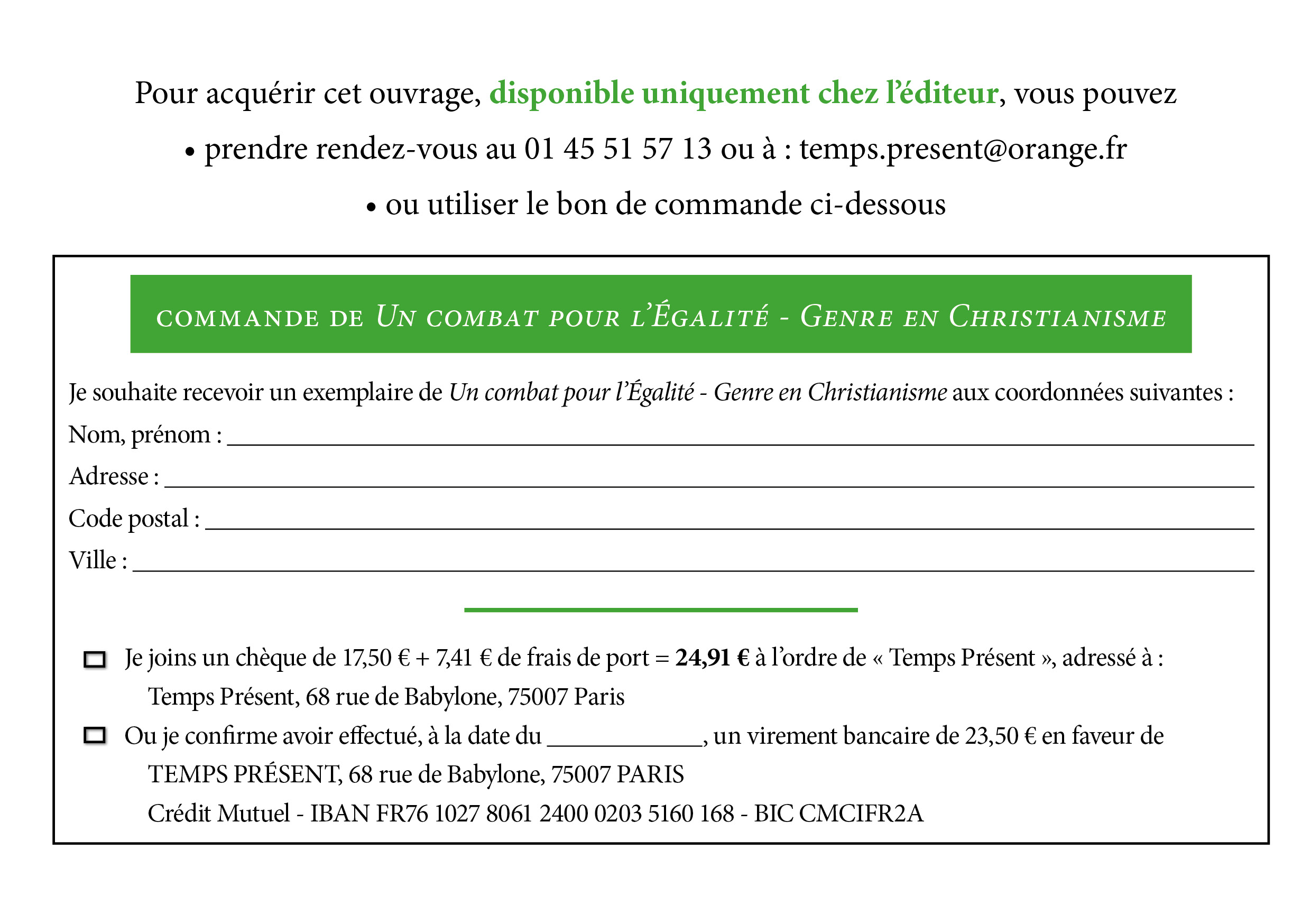 Cet ouvrage est un florilège de textes publiés dans les bulletins FHE entre 1980 et 1998, toujours d’actualité. Il est le fruit du travail collectif des responsables de l’association FHEDLES – Femmes et Hommes, Droits et Libertés dans les Églises et la Société – qui, à l’occasion des 50 ans de la création de FHE, souhaitent transmettre cet héritage à celles et ceux qui développent aujourd’hui ce questionnement sur l’égalité entre les femmes et les hommes.